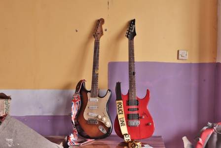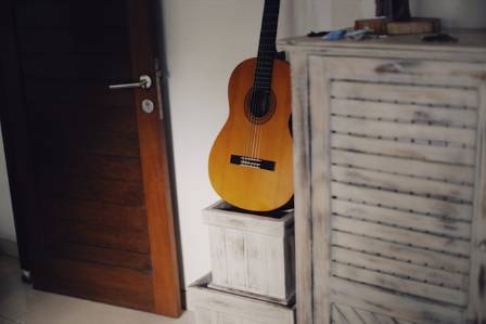 भित्तामा माउन्ट गरिएको गितार प्रदर्शनको कला